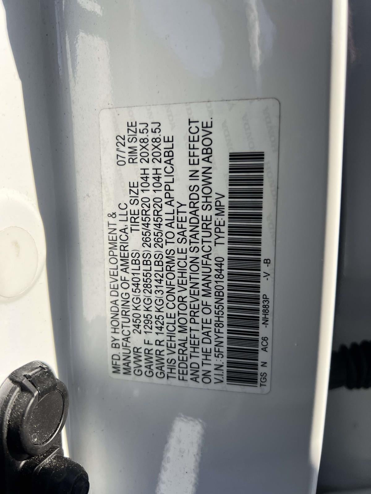 - Front Tire Size: P265/45HR20